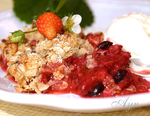 Подавать крамбль тёплым, с мороженым или со взбитыми сливками (при остывании начинка загустеет).