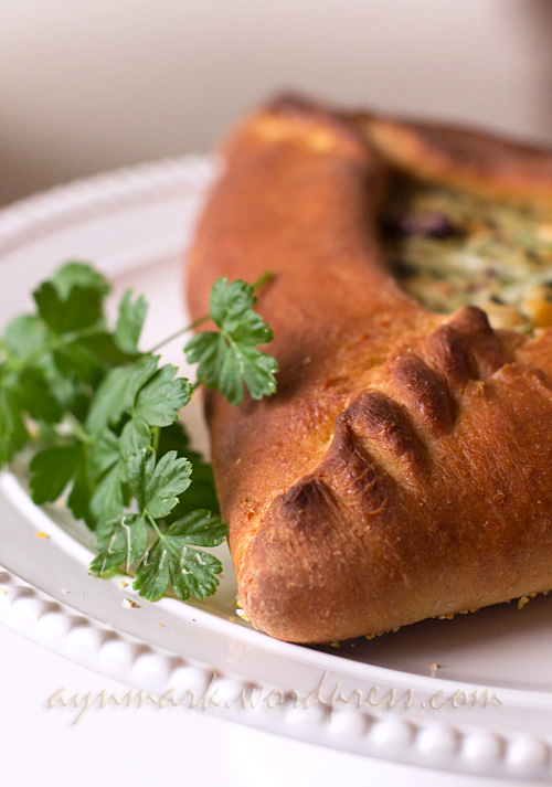 Их также можно сделать в форме кальзона – закрытых пирожков. Эти пироги я выпекаю на противне с двойным дном, воздушная изоляция предотвращает перегрев верхнего листа, и предохраняет выпечку от пригорания.
